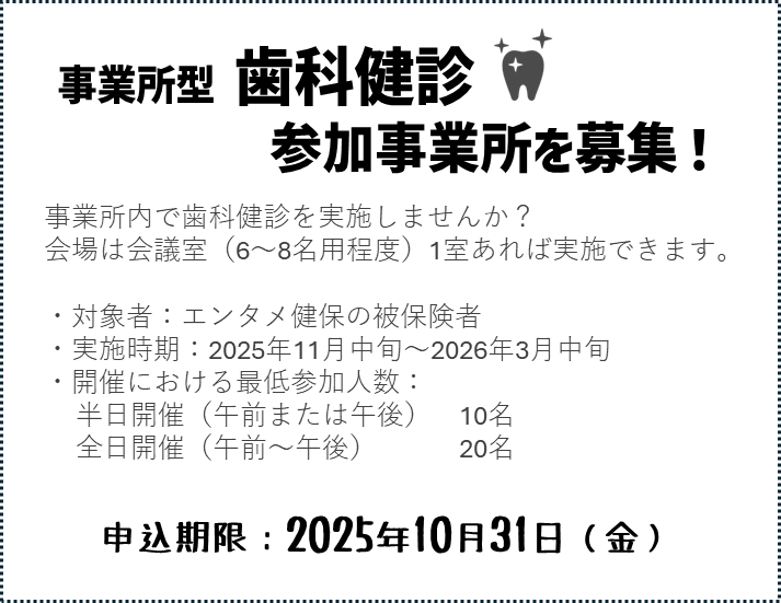 2025年10月1日より、事業所型歯科健診の参加事業所を募集します。